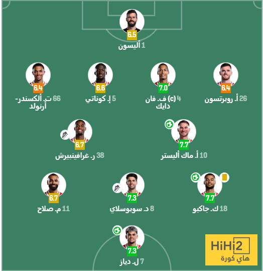 إليكم تقييم لاعبو ليفربول في الشوط الأول: